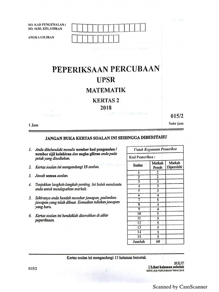 Soalan Percubaan Upsr 2018 Matematik Negeri Kelantan Kertas 2 Pdf